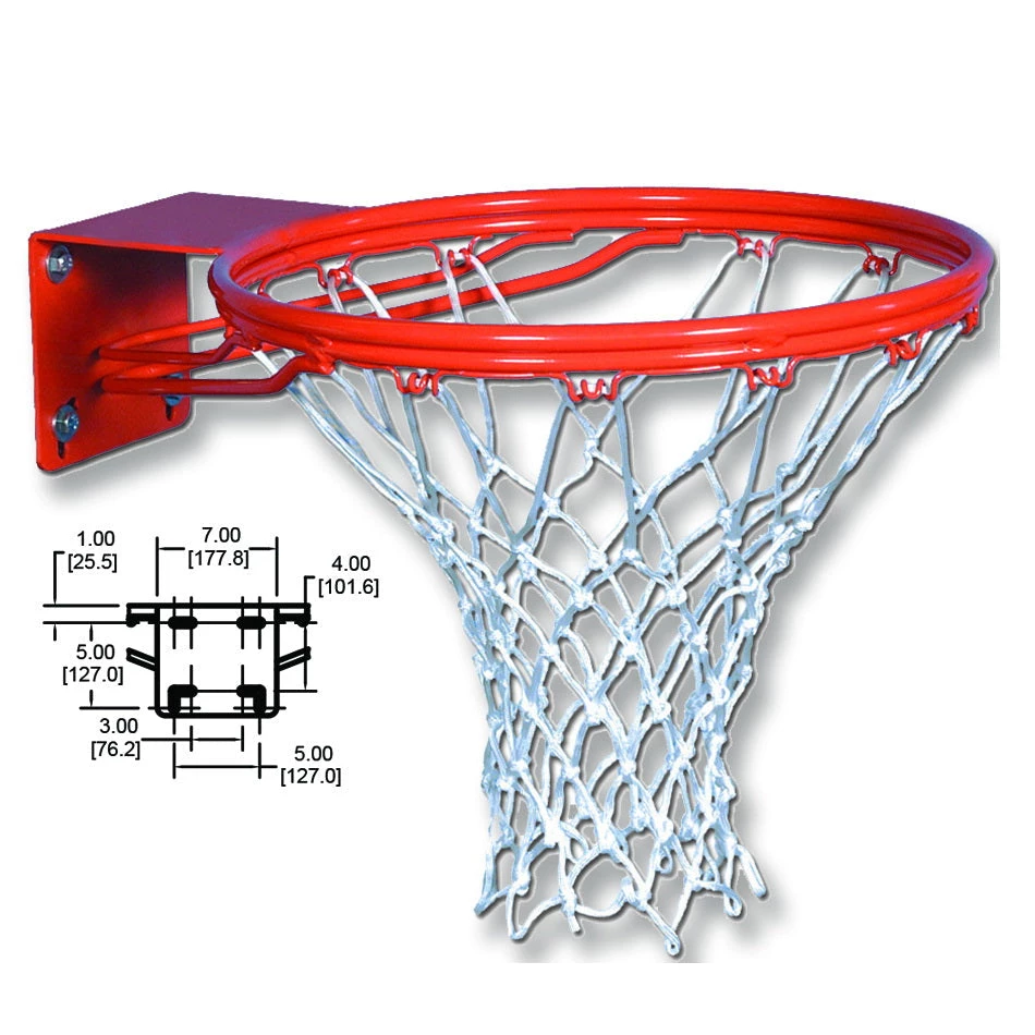 Understanding the anatomy of a front-mount fixed rim is the first step in choosing the correct fit for side courts or outdoor playgroundΒ courts. A fixed rim is comprised of four basic components: ring, bracing, net attachment and back-plate. As you add rings, ring diameter, and strengthen bracing, a stronger rim is built. Most fixed goals are double-ringed rims, with various levels of bracing. All rims feature universal backplates for a variety of backboard/rim combinations and ship with an outdoor quality net. While our fixed goals feature universal hole patterns, we do not recommend installing fixed goals on glass backboards as it increases the chance of board breakage.