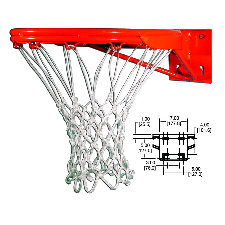 Understanding the anatomy of a front-mount fixed rim is the first step in choosing the correct fit for side courts or outdoor playground courts. A fixed rim is comprised of four basic components: ring, bracing, net attachment and back-plate. As you add rings, ring diameter, and strengthen bracing, a stronger rim is built. Most fixed goals are double-ringed rims, with various levels of bracing. All rims feature universal backplates for a variety of backboard/rim combinations and ship with an outdoor quality net. While our fixed goals feature universal hole patterns, we do not recommend installing fixed goals on glass backboards as it increases the chance of board breakage.