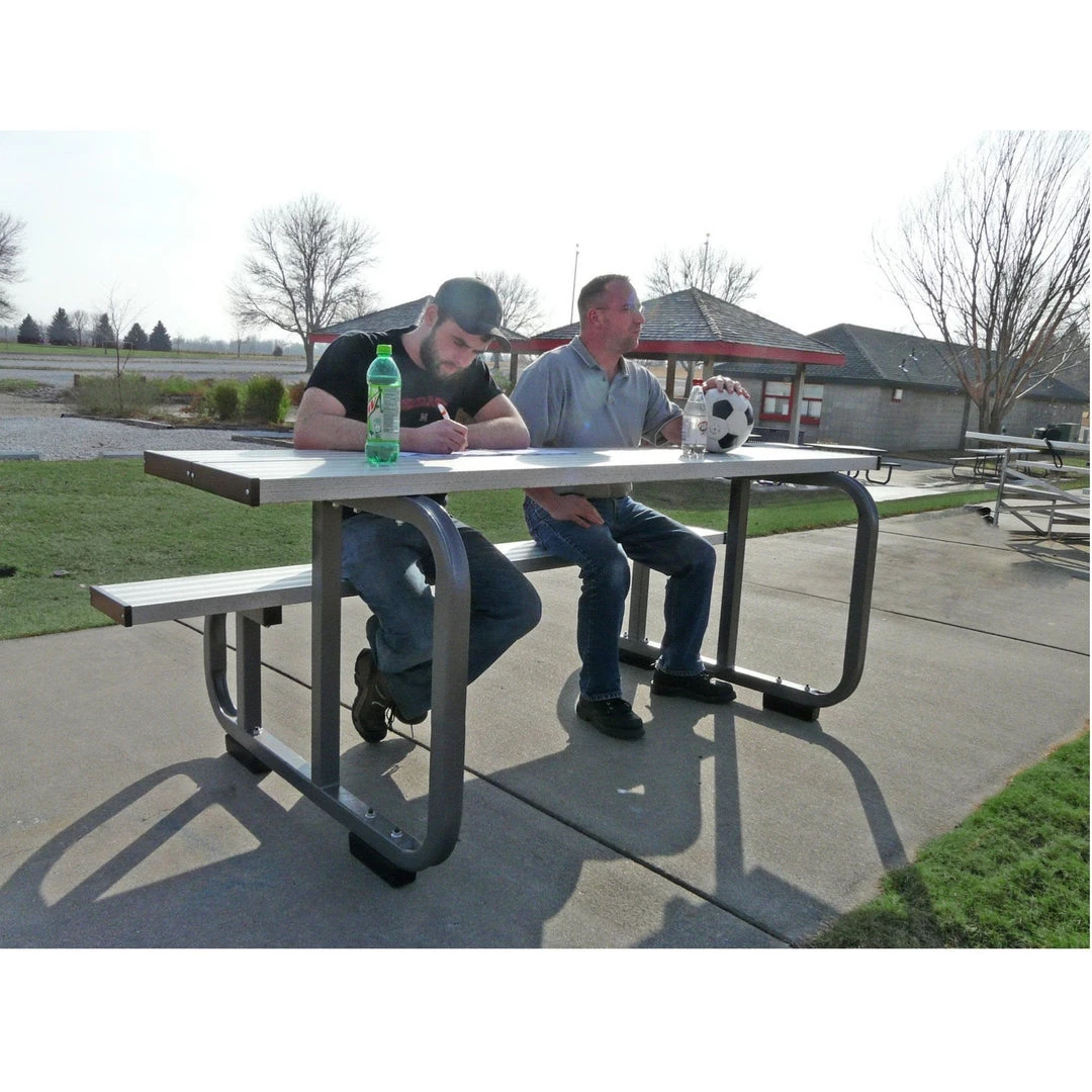 - Constructed of 2″ square powder coated steel tubing and 2″ x 10″ anodized aluminum planks