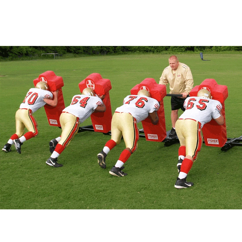 Blocking Sled FeaturesThe Fisher Brute blocking sled provides players with an action-reaction concept simulating a real game scenario of a collision with another player. This football blocking sled features a flat leaf spring which absorbs shock and pushes back on the player, simulating a real life opponent. The Fisher Brute tackling sled also features individual component stations that allows 2 man sleds to be upgraded to upgraded to a 3 or 4 man sleds, and for 5 man sleds to be reduced to 2 or 3 man sled stations. Order a Fisher Brute blocking sled today and get the most out of your next football practice!