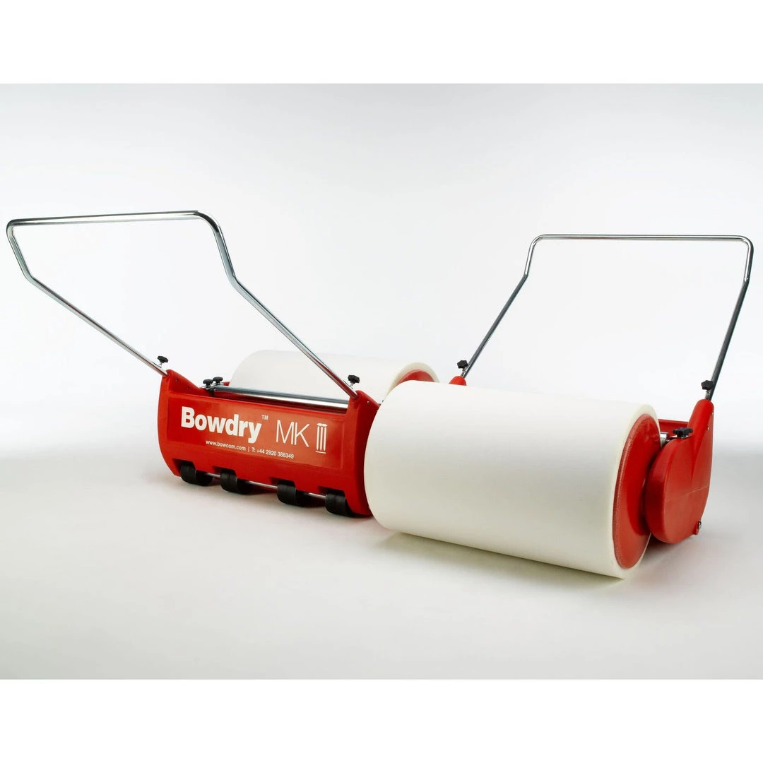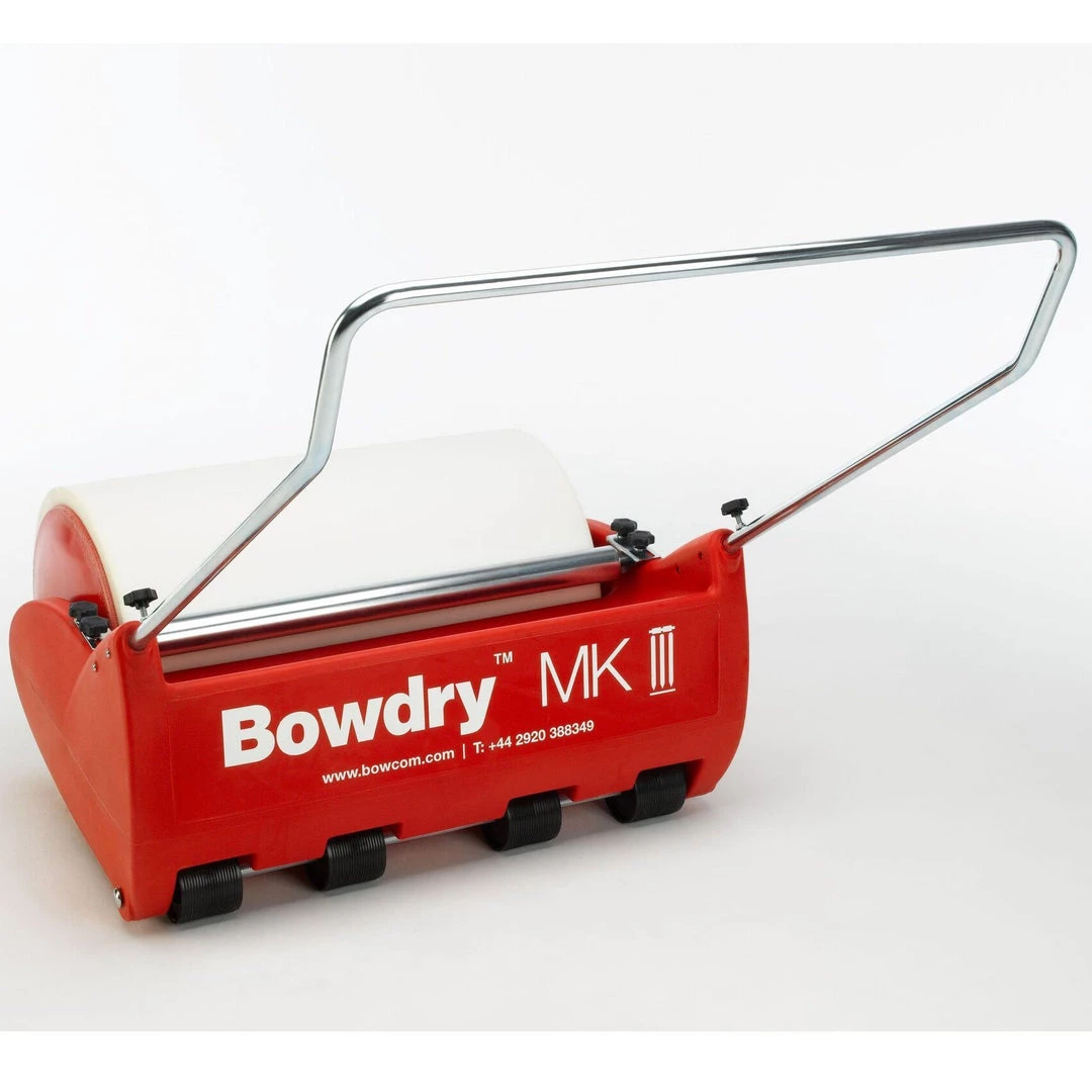 Bowdry MK IIIÂ incorporates a wider, durable foam roller that efficiently absorbs the water and does not damage turf. An integrated storage tank collects the excess water and can then be easily emptied from a valve located on the side panel. Bowdry MK IIIÂ also retains a four wheel chassis that evenly distributes the weight, ensuring effective water removal is achieved even on the finest turf.