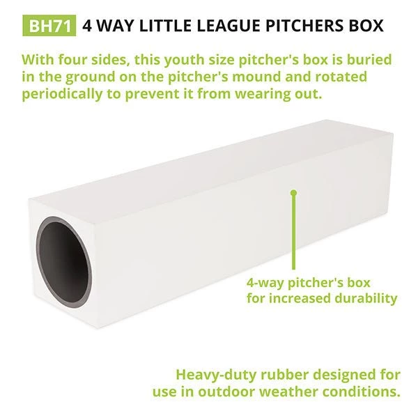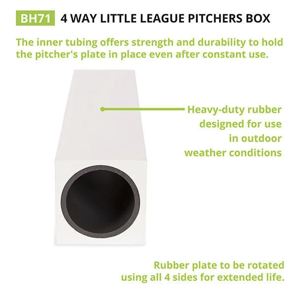 - 4-Way pitcher’s box for increased durability