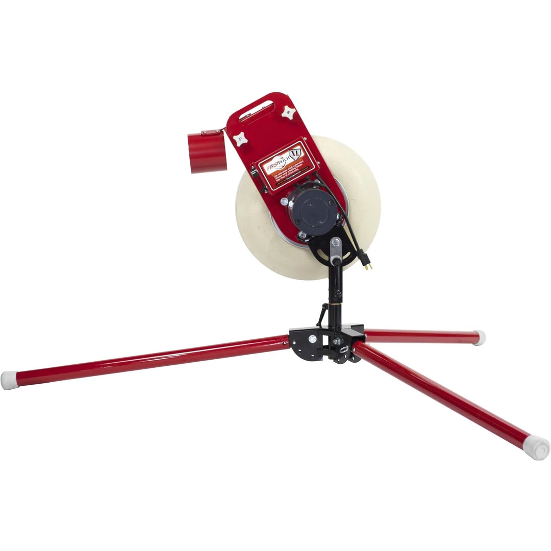 The First Pitch XL pitching machine is perfect for batting cages, BP on the field, and infield and outfield drills. The XL is built with a heavy duty steel construction and sits on a wide based tripod for stability. With throwing capabilities of up to 80+ MPH, this pitching machine is geared toward players with a little more experience on the field.