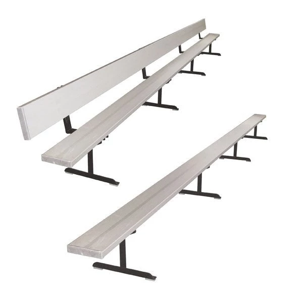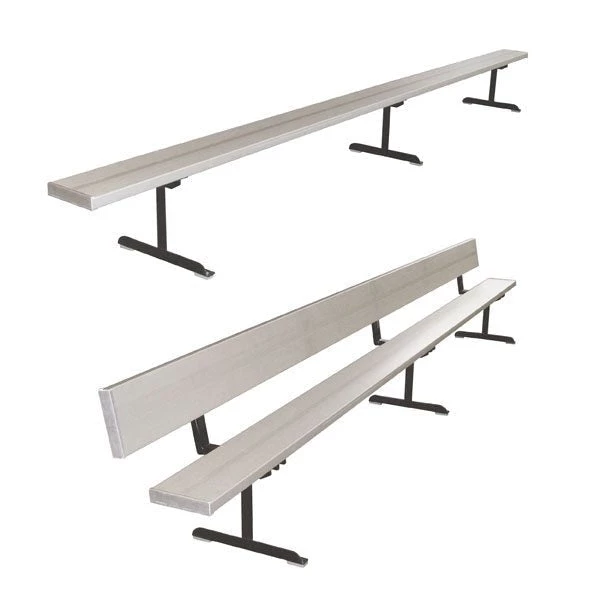 First Team introduces the Teammate line of player benches. All Teammate player benches use 9 5/8″ x 1 3/4″ anodized aluminum planking for seats and backrests. Support legs and backrest brackets are powder coat painted black, steel construction. Legs are spaced on 6’0″ centers. Portable player benches include rubber floor protectors to prevent floor damage. Teammate player benches are available in 8′, 15′ and 21′ lengths with and without backrests. For added school spirit, consider ordering benches in custom colors. First Team can powdercoat seat planks and backrests up to 21′ lengths in a variety of colors: Scarlet, Royal Blue, Forest Green, Kelly Green, Gold, Orange, Purple and White. Choose the Teammate player bench that meets your seating needs. See chart for seating capacity.