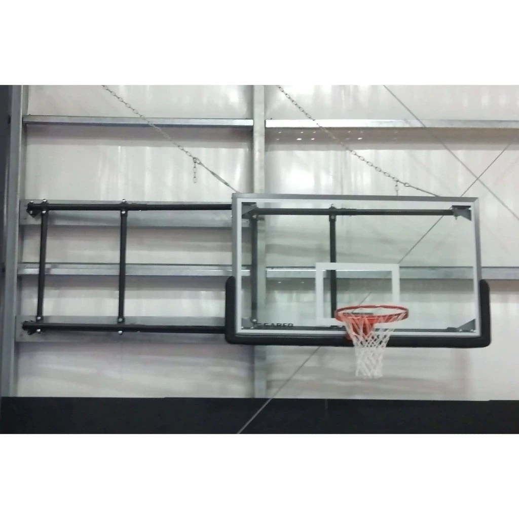 When choosing the right wall mount for your facility, there are several factors to take into consideration including: pre-existing structures or equipment, facility gymnasium space, condition of facility walls and budgetary constraints. We offer a full line of basketball wall mounts to customize your space for an optimal and safe play environment. Side-Fold Wall Mount Systems incorporate four-point attachment for backboards with 36″ x 63″ or 20″ x 35″ mounting centers. Stores compactly in side folding position against wall to prevent interference with other court activities. In play position, unit locks into stationary four-point position.Β