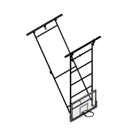 Dual Post Rear-Braced Rear-Folding Ceiling Hung Basketball Backstop