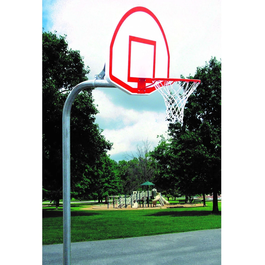 Maximize physical education and park budgets with a commercial grade PK3535 playground basketball system. This package features a 3-1/2″ O.D. braced gooseneck post with 36″ safe play area, fan-shape marked aluminum backboard, and economy fixed single rim.