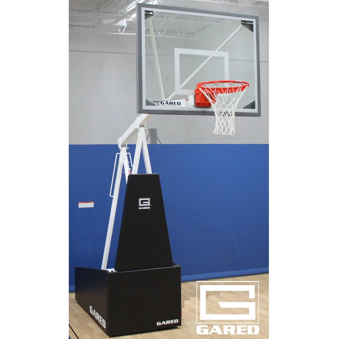 The GARED Hoopmaster® C54 is a versatile portable basketball backstop sporting a competition-quality glass backboard and breakaway rim combination. Perfect for facilities with court space limitations and for practice, club level and recreational league play. Ideal for school gymnasiums, churches, and side court placement. Sized to fit through standard double doors for easy portability and storage. Spring assisted height mechanism to ease the play position of unit. Locator pin and anchoring pins available for ultimate stability.