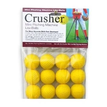 Lightweight and soft, these Trend Sports® Crusher Mini-Lite Balls are the size of a golf ball but can be hit in the garage, backyard, gym or at the ball park. The balls are colored optic yellow and formed to look like miniature pitching machine baseballs. The balls are great for developing hand/eye coordination and perfecting your swing at home.