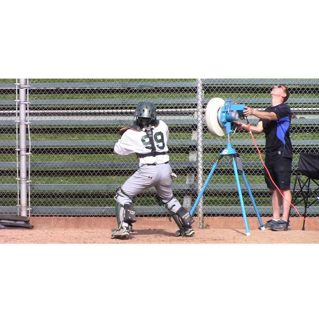 The swivel design base provides 360-degree movement for fly balls, pop-ups and ground balls. For fly balls, the machine also allows balls to fly the full distance. When you change it to changeup speed, fly balls are considerably shorter which forces outfielders to sprint to catch the ball.