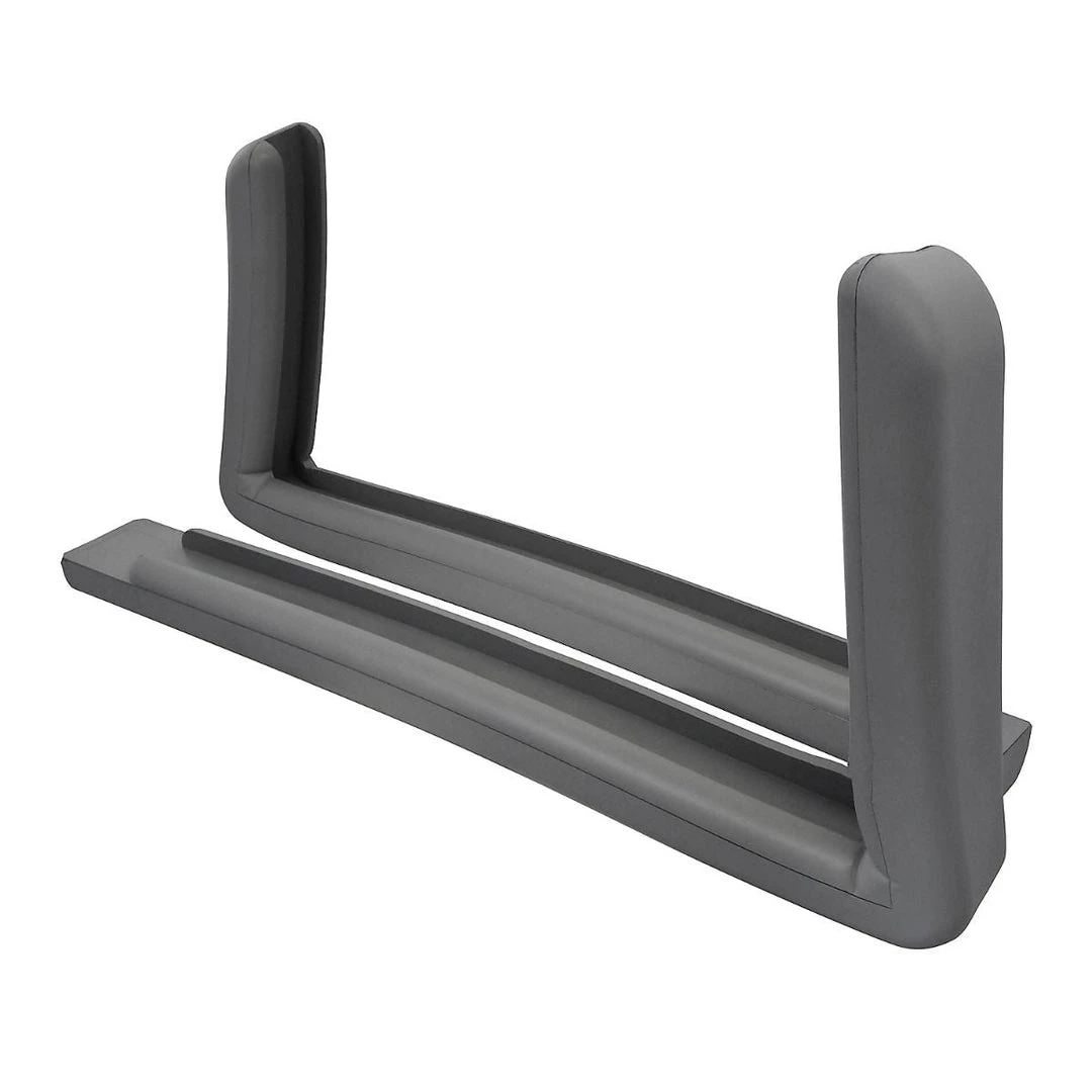 Pads molded from self-skinning polyurethane foam. Fast-setting adhesive installation. Available in gray only. Two sections of padding to pad one rectangular, glass backboard. Meets all NBA, NCAA, NFHS and FIBA.