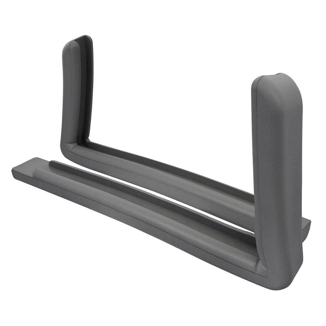 Pads molded from self-skinning polyurethane foam. Fast-setting adhesive installation. Available in gray only. Two sections of padding to pad one rectangular, glass backboard. Meets all NBA, NCAA, NFHS and FIBA requirements.