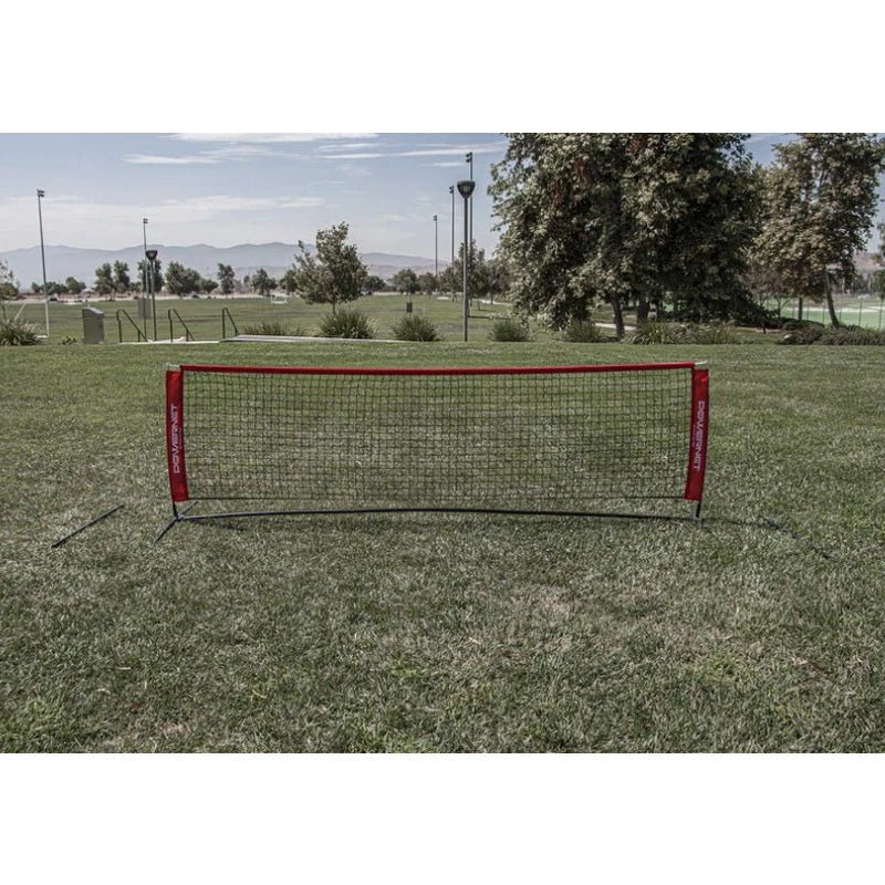 The PowerNet Badminton Net easily converts into a multisport net. This training aid has an adjustable height for badminton, tennis, volleyball and pickleball. Easy setup in minutes, no tools required, practice ready. Great for Outdoor and Indoor use. You can train play or practice anywhere. Perfect for team training as well as backyard fun with family and friends. Firm base ensures the net stays upright even with the hardest hit. Includes: 1 10 foot net and 1 carrying bag with shoulder straps.