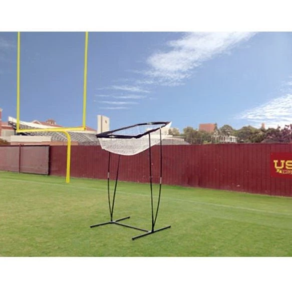 - Fade net measures 8′ tall to the center of the net with a basket that adjusts to 45 degrees catching passes from every yard line