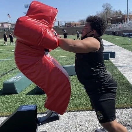 The Climb sled was designed to allow offensive and defensive linemen a realistic game like target to combat linemen who play “low and long”, leaving little surface area to strike the opponent. With DL’s offering little surface area to strike, the offensive lineman must learn the new “Climb” technique; by striking underneath the shoulder plate with an upper cut strike, while finding “handles” on the breast plate of the defender.