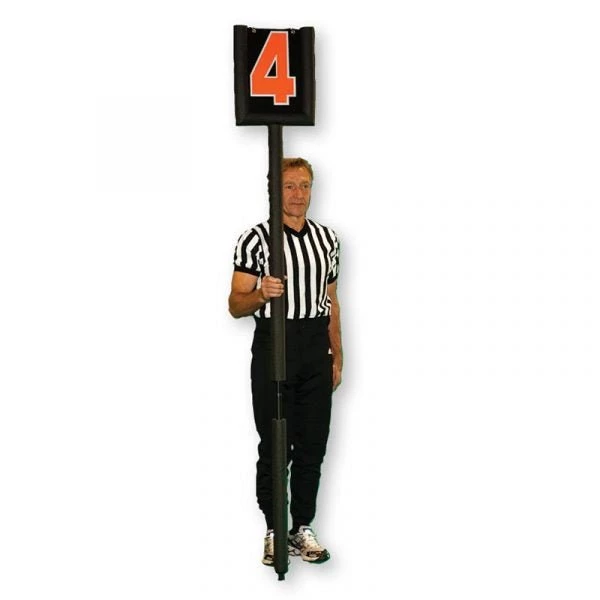 Padded flip down indicator with easy flip color numbers on grommet rings, safety padded top on 3 sides, 2 piece black padded aircraft aluminum pole.