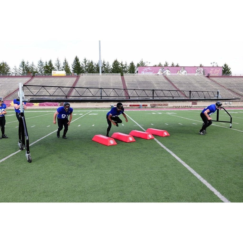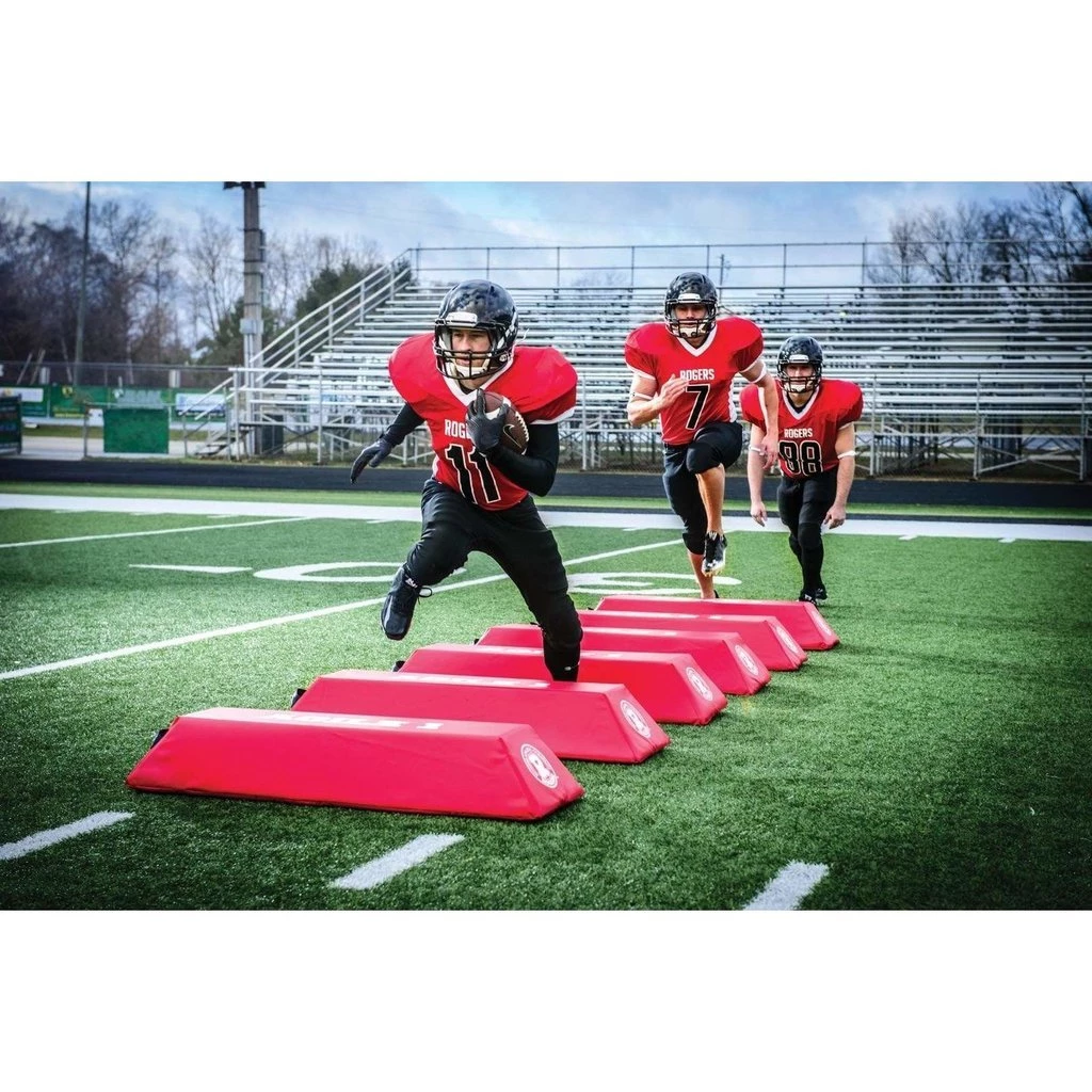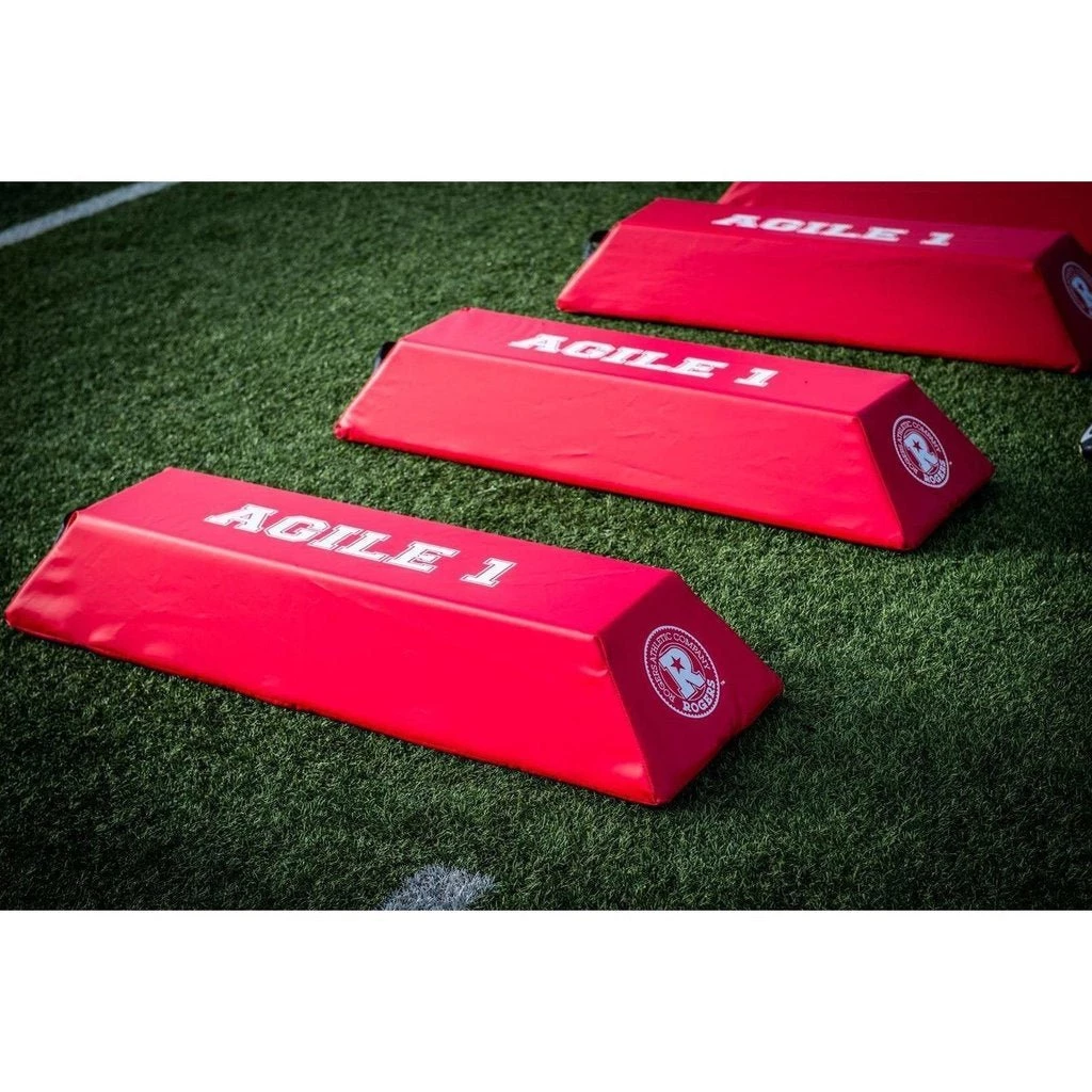Similar to the Agile 1 but with extra height to promote high-stepping agility. Recommended for pro and college teams. Size 115/8”h x 18”w x 50”l. Watch players for fluid motion, shoulders over knees, arms moving and eyes on you. Agile’s slanted sides and urethane foam core safely build confidence to play over traffic without looking at feet. A wide base eliminates repositioning after every drill. Made with industrial zippers and the foam insert will not hold water.