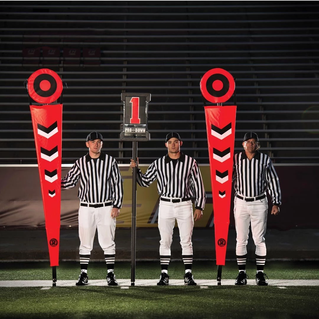 - Crafted from a special rocket-red vinyl, these markers quickly draw the eye to assess the distance to the first down.