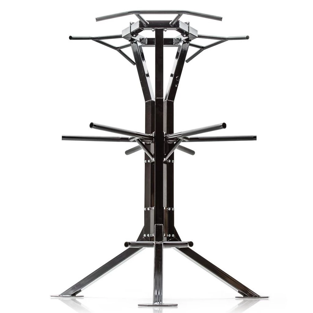 Strength training without having to go back into the gym is advantageous in many situations. This 6 position chin/dip station offers three pull up stations and 3 dip stations in one unit. Can be used indoor or outdoor.