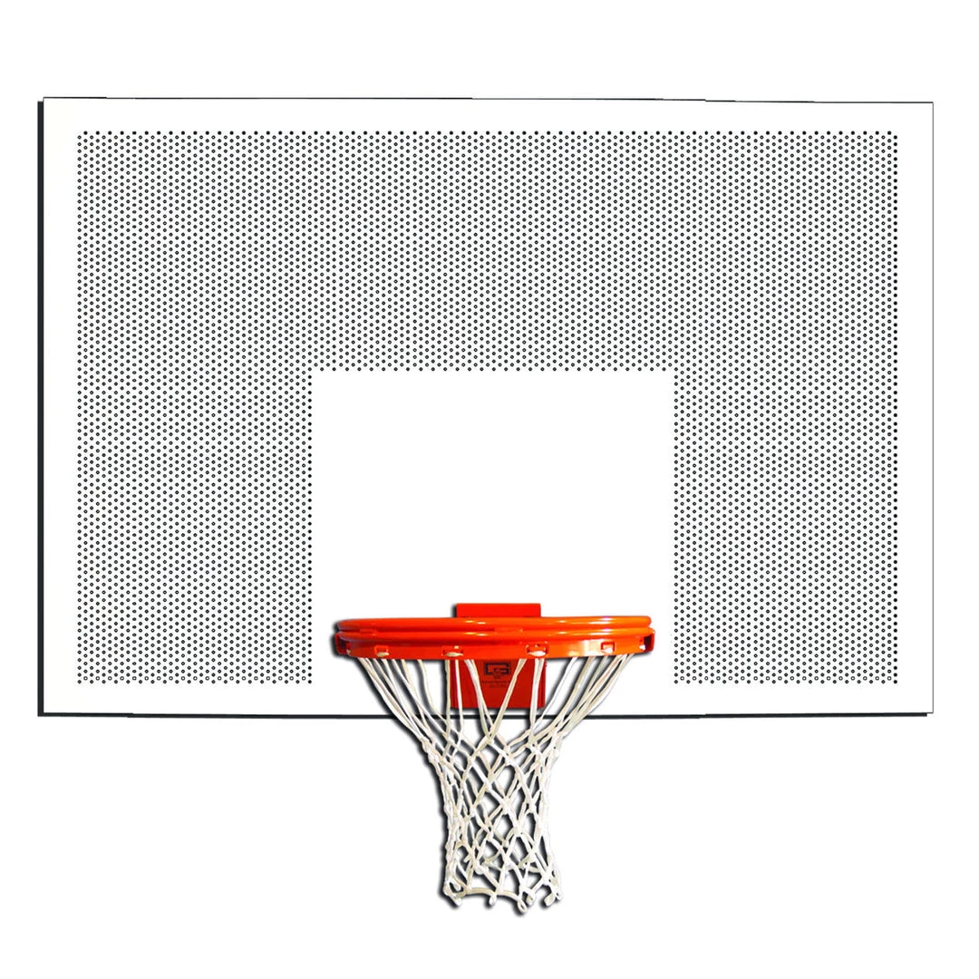 The 1260PS perforated steel backboard is designed especially for outdoor use and ideal in windy locations. The 42″ x 60″ board is dipped prior to white powdercoat to prevent oxidation of 11 gauge steel surface. Staggered 1/4″ perforations 1/2″ apart create shooters square outline and allow increased airflow through the board for a truer ball bounce.