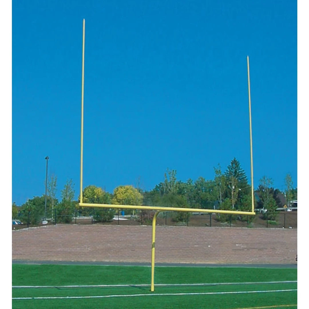 This official college football goal post has an improved design for enhanced rust resistance and meets NCAA specifications with a crossbar measuring 18′ 6″. Painted all white. Features Offset is 5′ 20′ H – 2-3/8″ aluminum powder coated uprights Fully adjustable in two directions insures crossbar is perfectly level and uprights are vertically plum 4-1/2″ O.D. galvanized and powder coated steel crossbar Galvanized and painted gooseneck Available permanent, semi-permanent or with an adjustable leveling plate All goal posts sold in pairs and ship by truck Ground Sleeves Available (FBGPGS)