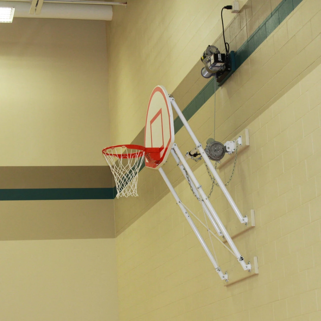 When choosing the right wall mount for your facility, there are several factors to take into consideration including: pre-existing structures or equipment, facility gymnasium space, condition of facility walls and budgetary constraints. We offer a full line of basketball wall mounts to customize your space for an optimal and safe play environment. Fold-Up Wall Mount Systems incorporate four-point attachment for backboards with 36″ x 63″ or 20″ x 35″ mounting centers. Stores compactly in vertical fold up position against wall to prevent interference with other court activities. In play position, unit locks into stationary four-point position.